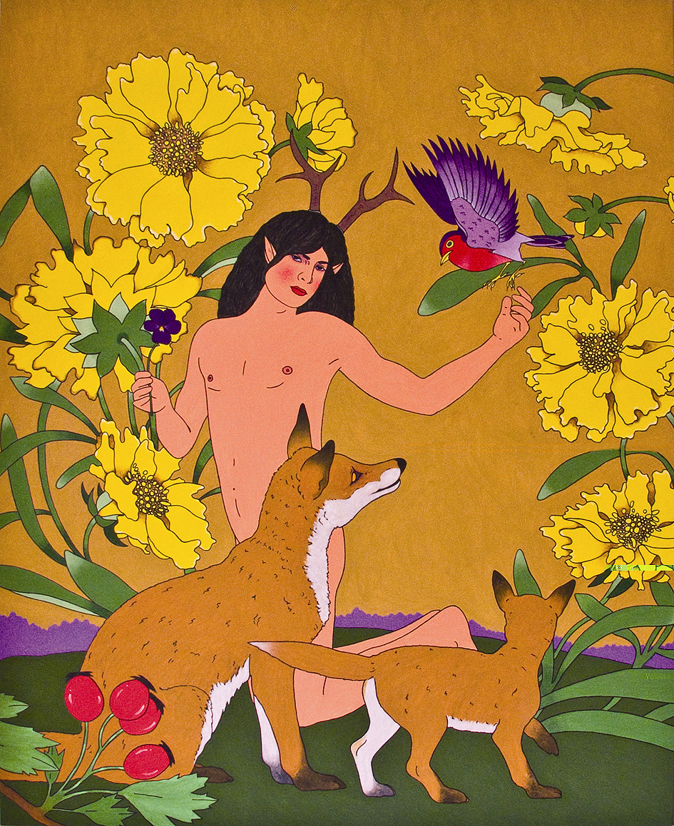 Fra le fonti d’ispirazione della sua originale ricerca la pittura preraffaellita e simbolista, ma anche l’immaginario New Age degli anni ottanta e l’estetica più attuale.